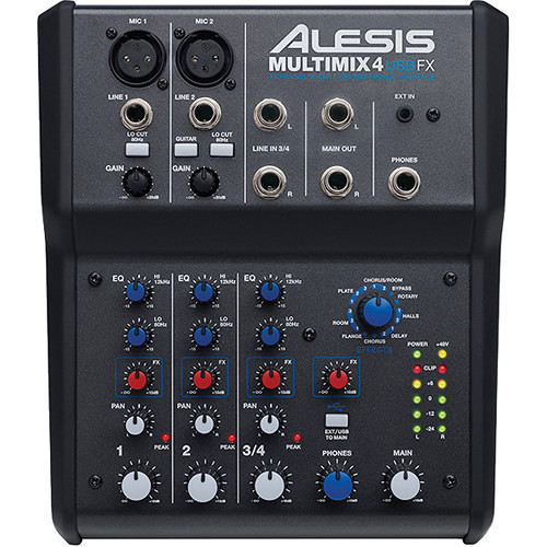The Alesis MultiMix 4 USB FX is a compact, 4-channel mixer designed to be an easy-to-use tool for small-scale audio setups. With a built-in USB audio interface, this device connects seamlessly to your computer for simple recording or streaming. It's ideal for both home studio recording and live sound environments, offering great versatility in a compact form. The unit is class-compliant with both Mac and PC, requiring no extra drivers for installation, making it a plug-and-play solution for users who want simplicity and efficiency.