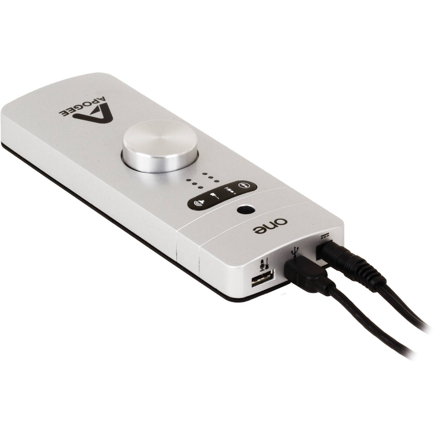 The Apogee One Audio Interface is a compact USB audio interface that combines high-quality recording with ease of use. This recording device is designed to be compatible with iOS, Mac, and Windows PCs, making it versatile for various users. Whether you're a musician, podcaster, or audiophile, this device offers studio-grade performance in a portable form. Offering 24-bit/96kHz resolution, the Apogee One delivers professional-level sound that is ideal for both simple and more complex setups.