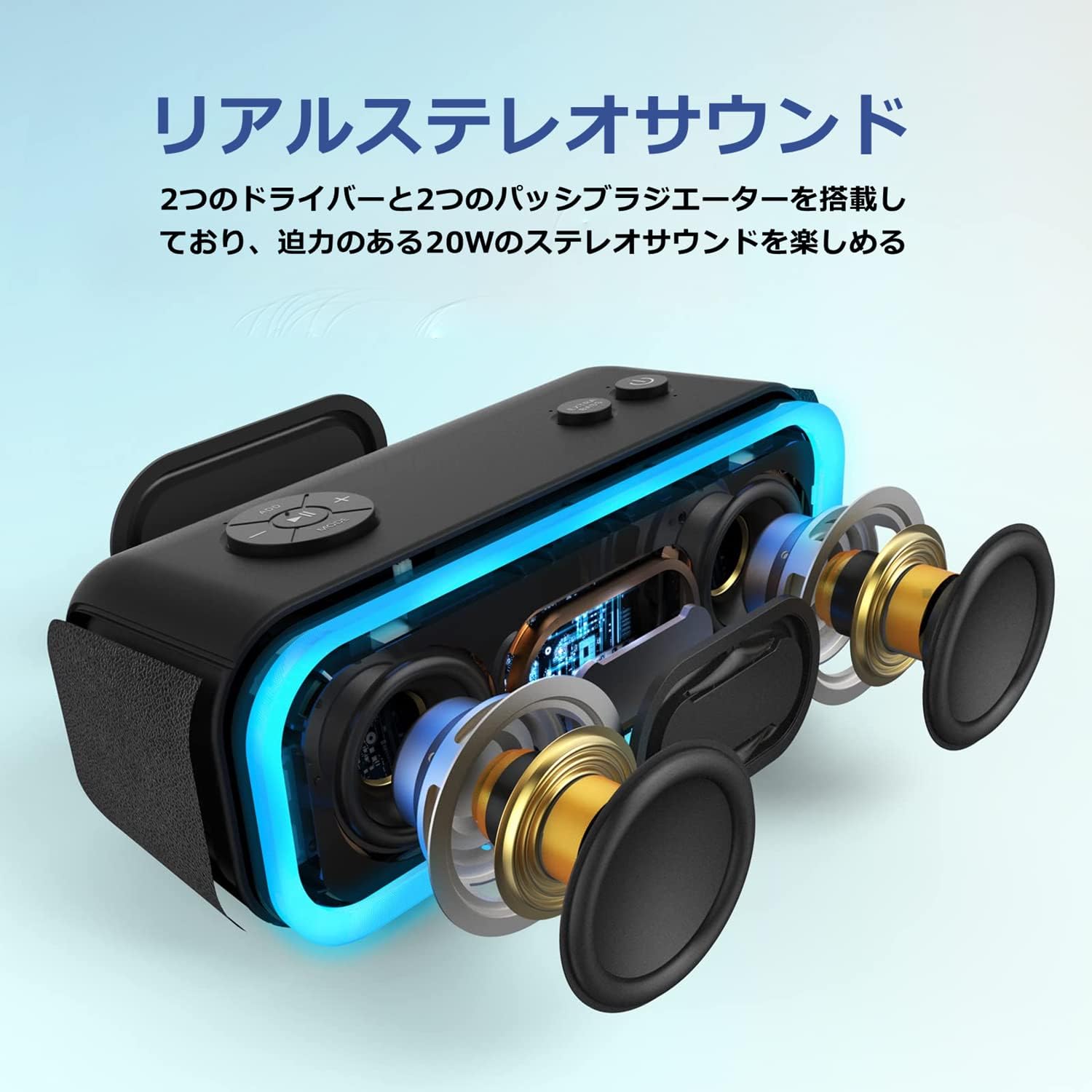 - This Bluetooth speaker delivers powerful 20W stereo sound, making it great for outdoor gatherings.