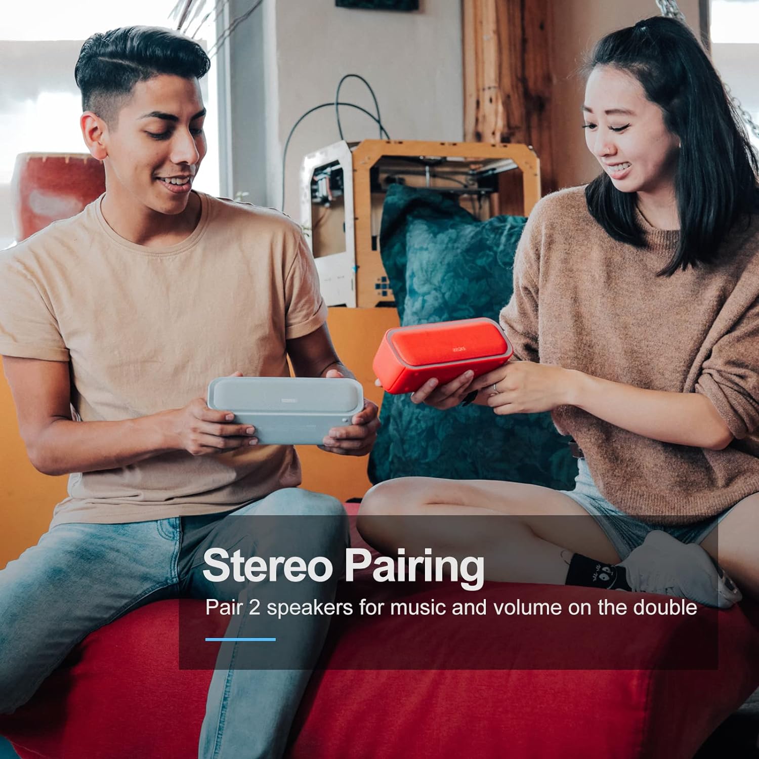 - TWS pairing enables users to connect two speakers for immersive stereo sound in larger spaces.